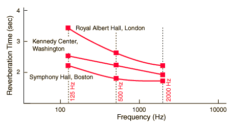 Auditorium ExamplesThe auditoriums cited below are some of the most outstanding in the world, and they show the consistent pattern of having significantly longer reverberation times for low frequencies.