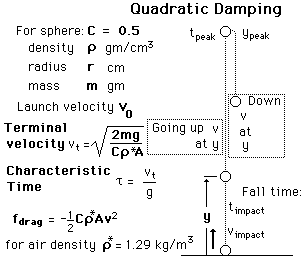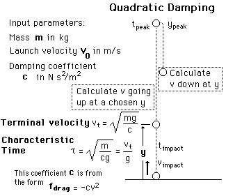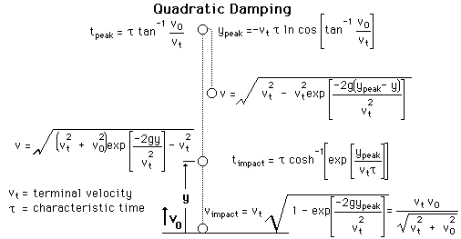 Vertical TrajectoryCalculating a vertical trajectory in air under the conditions of quadratic drag gives the following expressions:![]()