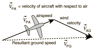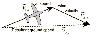 Airplane in Wind: Calculation of Ground Velocity
