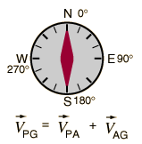 Navigation directions are usually expressed in terms of compass angles as illustrated.