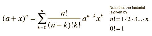 Binomial TheoremFor any value of n, whether positive, negative, integer or non-integer, the value of the nth power of a binomial is given by: ![]() There are many binomial expansion applications in physics. |