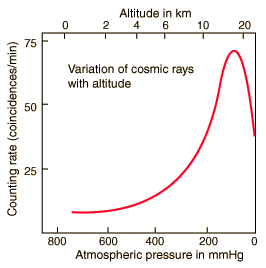 Cosmic RaysCosmic ray is the term given to high energy radiation which strikes the Earth from space. Some of them have ultrahigh energies in the range 100 - 1000 TeV. Such extreme energies come from only a few sources like Cygnus X-3. The peak of the energy distribution is at about 0.3 GeV.