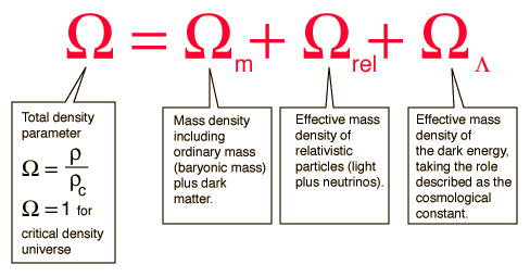 indicating that the universe is very close to critical density or Ω =1. Critical density is calculated to be ρc,0 = 9.47 x 10-27 kg/m3