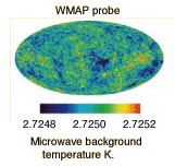 | The equivalent mass density of the relativistic particles, made up of electromagnetic energy and neutrinos, is assessed by WMAP to be Ωrel,0 = 8.24 x 10-5. This implies that in the comparison with mass, the mass is strongly dominant over radiation in the current era. At early times in the universe, radiation was dominant over both mass and dark energy. |