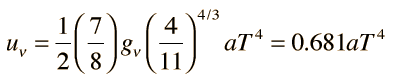 where the photon "g-factor" is grad = 2 is the number of effective degrees of freedom associated with a photon: it's polarization can be parallel or anti-parallel to its motion. This notation facilitates its combination with neutrino energy density in describing the contribution of relativistic particles to the universe's energy density.