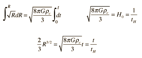 The simplified expansion equation is expressed in terms of the dimensionless scale factor R for the universe. ![]() In the case where ρ = ρc, the critical density, then the curvature parameter k = 0. Since the expanding shell always contains the same amount of mass, we can write ![]() and putting the equation in a form where it can be integrated and expressed in terms of the Hubble time tH ![]() Then for the present time R=R0=1 the expansion time is ![]() and the scale factor R is given by ![]()