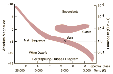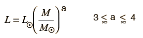 For main sequence stars, the luminosity increases with the mass with the approximate power law: