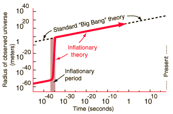 Inflationary Period in Big BangPartly in response to the problems in cosmological models known as the "flatness problem" and the "horizon problem", Alan Guth proposed a period of extraordinary inflation at an early stage of the "Big Bang" expansion of the universe. ![]()