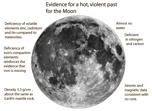 Development of Lunar Origin HypothesesBefore the landing of Apollo 11 on the Moon in 1969, the most popular theory was the the Moon had formed cold and could be a Rosetta Stone for studying the origin of the solar system. The sheer volume of data and samples returned by the Apollo program occupied planetary scientists for over a decade. At a critical meeting on the origin of the Moon held in Kona, Hawaii in 1984 a new picture began to emerge, one involving a massive impact early in the history of the Earth. A collection of papers from that meeting was published in a 1986 book edited by Hartmann, Phillips and Taylor who had been working on the impact hypothesis for some years. Hartmann had worked with Donald R. Davis on earlier models of this hypothesis. Cameron and Canup also worked on the impact hypothesis and did computer simulations of the process. Such modeling was the subject of Dr. Robin Canup's Ph.D. dissertation in the 1990's on the moon's origin and the giant impact hypothesis. Some web |