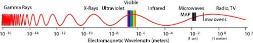 The Wilkinson Microwave Anisotropy Probe (WMAP)The WMAP mission has provided the first detailed full-sky map of the microwave background radiation in the universe. The map produced is characterized as a map of the effective temperature of the microwave background radiation as depicted below. This is a synopsis of the description of the mission from the WMAP mission report on the NASA website. The illustrations are NASA graphics. ![]() Note that the temperature variation on the Earth covers about 100°C while those measured by WMAP range only over about 0.0004 °C, a smaller range by a factor of a quarter of a million. The wavelengths of radiation detected by WMAP were in the microwave region of the electromagnetic spectrum as depicted in the NASA graphic below. ![]() The synopsis of the implications of WMAP as summarized in the mission report includes the following quote from the WMAP site: