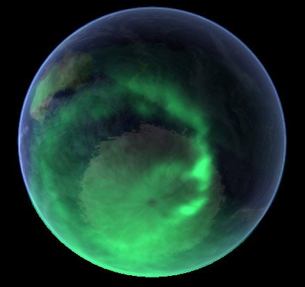 Aurora at South Pole![]() The Sun produced at least five major "halo" coronal mass ejections (CMEs) over the period of Nov. 4-8, 2004, an unusually fast pace for solar activity.The Polar spacecraft saw the aurora australis (southern lights) expanding and brightening on Nov. 8. A "halo" CME occurs when a CME produces an expanding circle of particles all around the Sun. When observers see this they know the CME is heading directly towards or away from Earth. In this case, all were headed in our direction, bringing the auroral light show with them. The source of storms was a group of sunspots called Active Region 696. The area also produced powerful solar explosions called flares. Credit: NASA/UC Berkeley ![]() From space, the aurora is a crown of light that circles each of EarthÕs poles. The IMAGE satellite captured this view of the aurora australis (southern lights) on September 11, 2005, four days after a record-setting solar flare sent plasmaÑan ionized gas of protons and electronsÑflying towards the Earth. The ring of light that the solar storm generated over Antarctica glows green in the ultraviolet part of the spectrum, shown in this image. The IMAGE observations of the aurora are overlaid onto NASAÕs satellite-based Blue Marble image. From the EarthÕs surface, the ring would appear as a curtain of light shimmering across the night sky. Though scientists knew that the aurora were caused by charged particles from the Sun and their interaction with the EarthÕs magnetic field, they had no way to measure the interaction until NASA launched the Imager for Magnetopause-to-Aurora Global Exploration (IMAGE) satellite in 2000. The satelliteÕs mission was to collect data that would allow scientists to study the structure and dynamics of the EarthÕs magnetic field for the first time. Designed to operate for two years, IMAGE sent its last data to Earth in December 2005 after a highly successful five-year mission. Since 2000, IMAGE has provided insight into how the EarthÕs powerful magnetic field protects the planet from solar winds. Without the shield the magnetic field provides, the upper atmosphere would evaporate into space under the influence of solar winds. IMAGE has shown scientists what sort of changes the magnetic field undertakes as it diverts solar winds from the Earth. Image and description courtesy NASA |