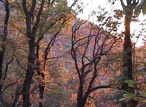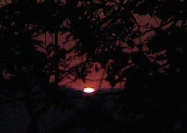 ![]() Watching through the viewfinder of the video camera, I was surprised to see the distinct green flash just before the sun disappeared. On the digital video camera, only two frames showed evidence of the green light, so only 1/15 of a second showed the phenomenon. To be sure, the image above is not very convincing, but if you look closely, you will see a hint of green at the top of the sun image. It was much more dramatic through the viewfinder. I never expected to be able to see it over a wooded mountain - I had heard reports only of sea views and views over bare rock mountains. | Index Atmospheric optics concepts | ||