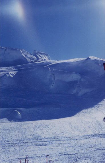 He describes the preconditions as follows: "It was a brilliant sunny day but there was a high upper wind off Mount Erebus, filling the air with falling ice crystals."