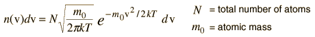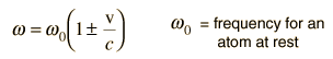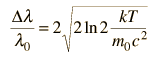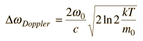 Broadening of Spectral LinesIn the study of transitions in atomic spectra, and indeed in any type of spectroscopy, one must be aware that those transitions are not precisely "sharp". There is always a finite width to the observed spectral lines. One source of broadening is the "natural line width" which arises from the uncertainty in energy of the states involved in the transition. This source of broadening is important in nuclear spectra, such as Mossbauer spectra, but is rarely significant in atomic spectroscopy. A typical lifetime for an atomic energy state is about 10^-8 seconds, corresponding to a natural linewidth of about 6.6 x 10^-8 eV. For atomic spectra in the visible and uv, the limit on resolution is often set by Doppler broadening. With the thermal motion of the atoms, those atoms traveling toward the detector with a velocity v will have transition frequencies which differ from those of atoms at rest by the Doppler shift. The distribution of velocities can be found from the Boltzmann distribution. Since the thermal velocities are non-relativistic, the Doppler shift in the angular frequency is given by the simple form ![]() From the Boltzmann distribution, the number of atoms with velocity v in the direction of the observed light is given by ![]() The distribution of radiation around the center frequency is then given by ![]() This is in the form of a Gaussian, and the width at half-maximum is given by ![]() Often it is convenient to express this in terms of wavelength. ![]() When you move further down the spectrum into the microwave region for molecular rotational spectra, the natural linewidth again emerges as a larger source of broadening than Doppler broadening. At some pressure, the perturbations of rotational energy levels by molecular collisions (pressure broadening) becomes the limiting factor for resolution.