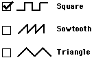Geometric WavesSimple geometric waves are often used in sound synthesis since they have a rich complement of harmonics. These harmonics can be filtered to produce a variety of sounds. ![]()