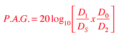 The ratio of these two levels is the maximum gain before reaching the feedback condition. This ratio is used to develop the P.A.G. expression.