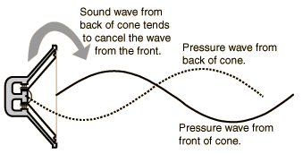 This is one of the reasons why even the best cone-type loudspeaker must have an enclosure to produce good sound. The enclosure increases the effective size of the loudspeaker.