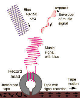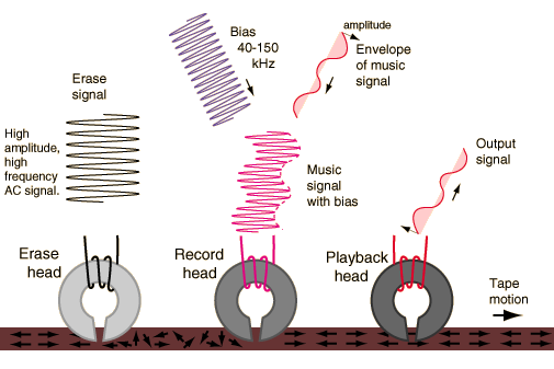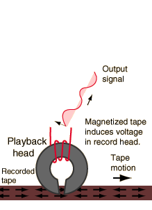 When a magnetized tape passes under the playback head of a tape recorder, the ferromagnetic material in the tape head is magnetized and that magnetic field penetrates a coil of wire which is wrapped around it. Any change in magnetic field induces a voltage in the coil according to Faraday's law. This induced voltage forms an electrical image of the signal which is recorded on the tape.