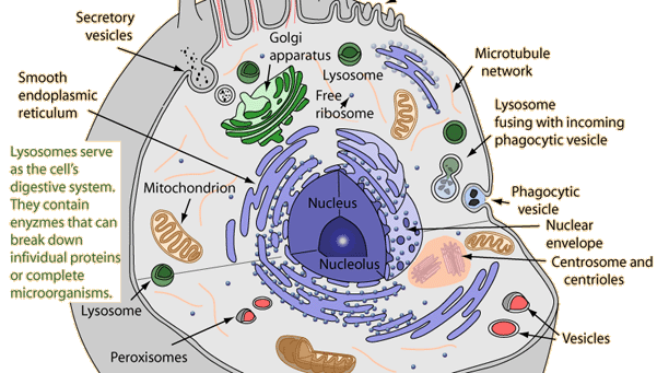 Lysosome![]() Within eukaryotic cells are specialized vesicles called lysosomes that contain digestive enzymes. These enzymes break down foreign material which may enter the cell. The name lysosome means "releasing body" and their enzymes cause "lysis" or disintegration of certain materials. They can be used to break down worn-out cellular components or bacteria engulfed by the cell. The enzymes they contain are so powerful that they can kill their host cell if released, so in normal cells they remain contained within the lysosome's membrane. The enyzmes contained in lysosomes are examples of the proteins that are manufactured by the ribosomes, typically in the rough endoplasmic reticulum. They are then packaged by the Golgi apparatus inside the membranous vescicles that make up the lysosomes. The main function of lysosomes is to accomplish digestion of food particles. The kinds of things they break down range from individual protein molecules to complete microorganisms. |