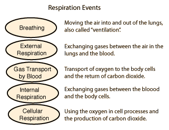 By "respiratory system" we usually mean the passages that transport incoming air to the lungs and to the microscopic air sacs called alveoli where gases are exchanged. The term respiration refers to the whole chain of processes from the inhalation of air to the use of oxygen in the cells.