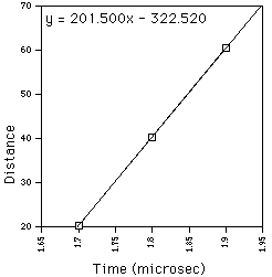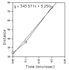 Experimental Problems: Speed of Light1. Frequency must be high to give a measurable separation. 1.4 MHz was used by W95 group. A triangle wave made reading the wave position easier. 2. Mirror shake was a problem. Hopefully the use of optical tables and mounts will help with that. 3. The signal from one photocell would bleed into the other, making the signal indistinct. The W95 group used the signal generator as a standard and measured the two photocells against that standard and took the difference. 4. The scope is difficult to read because of vibrations and a fuzzy signal. 5. Internal delays of the triggering of the oscilloscope? caused the line of best fit of the data to not cross zero. To overcome this problem, the slope of the data at different distances with respect to time was taken to get the speed of light. |