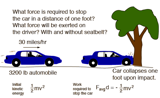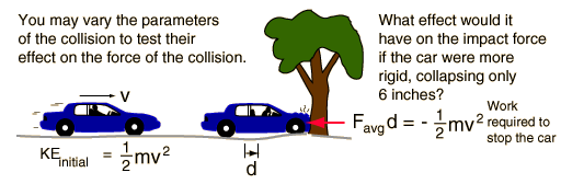 Example of Force on Car![]() (This initial example is cast in U.S. common units because most U.S. readers can make comparisons to known forces more easily in those terms. The calculation provides the results in SI units as well.) Vary the parameters of the collision |