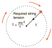 Any motion in a curved path represents accelerated motion, and requires a force directed toward the center of curvature of the path. This force is called the centripetal force which means "center seeking" force. The force has the magnitude