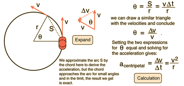 For circular motion at a constant speed v, the centripetal acceleration of the motion can be derived. Since in radian measure,