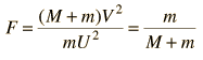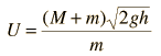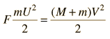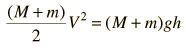 In the second event, the ball collides with the "catcher" of mass M and is trapped by the spring. The system loses kinetic energy in the deformation of the spring and the creation of sound. Linear momentum, however, must be conserved. The pendulum, of mass (M + m), moves with a new horizontal velocity, V. The momentum of the system is now: