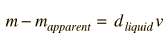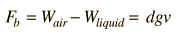 where d is the density of the liquid, g is the acceleration of gravity and v is the volume of the immersed object (or the immersed part of the body if it floats). In this experiment the pan balances will compare masses in grams rather than weights. Since W=mg, the apparent change in mass when submerged is