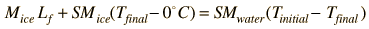 where Lf is the symbol for the heat of fusion in calories/gram. The necessary heat will be transferred from the warm water to the ice. PROCEDURE: 1. Warm some water to about 15°C above room temperature. (Water from the hot water tap may be hot enough.) 2. Mass the empty calorimeter with the styrofoam cup and record its mass. Remass it when it is approximately half full of the warm water and record the new mass. This must be done carefully, as it cannot be repeated later. Calculate the mass of the warm water. 3. Gently stir the water and record its temperature using the 50°C thermometer. 4. Dry pieces of the ice provided with a piece of paper towel. Slip them into the water, stirring gently and being careful not to splash water out. Continue to stir the water while adding ice to it one piece at a time. When the temperature of the water is approximately 15°C below room temperature, stop adding ice. When the last bit of ice has melted, record the lowest temperature that the water reaches. This temperature is the final temperature of the warm water and of the ice water. 5. Mass the calorimeter and its contents and determine the mass of ice that was added. 6. Calculate the heat of fusion and find the percent deviation from the accepted value 79.72 cal/gm. QUESTIONS: 1. How many calories are required to heat 10 grams of water by 20°C? 2. What temperature change would the above amount of energy cause in 10 grams of lead? 3. How would the results for the heat of fusion of water have been affected if the ice were not dried before being placed in the calorimeter? Would this have made the measured heat of fusion larger or smaller? Specific heats (cal/gm °C)