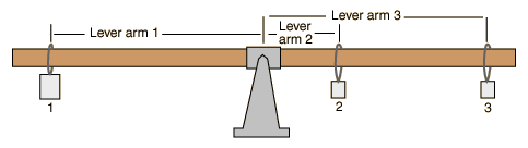 Torque and EquilibriumThe two conditions for an object to be in equilibrium are (1) zero net force and (2) zero net torque on the object. This experiment will deal with rotational equilibrium and torques. Torque is a measure of a force's tendency to produce rotation and can be defined by Torque = Force x Lever arm where the lever arm is the perpendicular distance from the axis of rotation to the line of action of the force. This is illustrated in the diagram below for a bicycle pedal; at different points in the pedaling motion the force of the rider's foot is more effective in producing rotation because the lever arm is longer. ![]() When more than one torque acts to produce rotation about an axis it is often convenient to divide them into clockwise and counterclockwise torques, and the condition for rotational equilibrium is then Sum of clockwise torques = Sum of counterclockwise torques