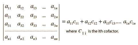 Determinants A determinant is a square array of elements with a prescribed evaluation rule which is depicted as follows ![]() Determinants are useful in the evaluation of vector products and vector operations like the curl. |