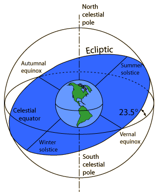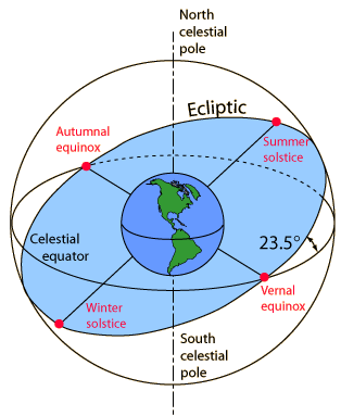 The tilt of the Earth's axis with respect to the ecliptic is responsible for Earth's seasons. |