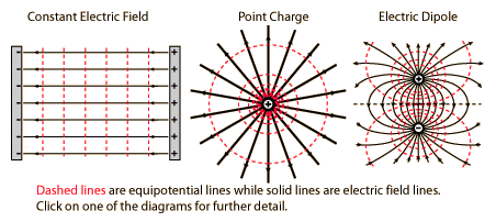 Equipotential LinesEquipotential lines are like contour lines on a map which trace lines of equal altitude. In this case the "altitude" is electric potential or voltage. Equipotential lines are always perpendicular to the electric field. In three dimensions, the lines form equipotential surfaces. Movement along an equipotential surface requires no work because such movement is always perpendicular to the electric field. ![]() |