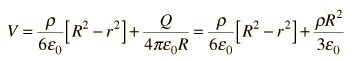 Now examining the potential inside the sphere, the potential must have a term of order r2 to give a constant on the left side of the equation, so the solution is of the form
