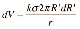 In this form it could be used as a charge element for the determining of the potential of a disc of charge.