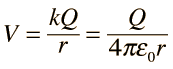 The use of Gauss' law to examine the electric field of a charged sphere shows that the electric field environment outside the sphere is identical to that of a point charge. Therefore the potential is the same as that of a point charge: