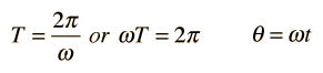 The period T of the sinusoid is related to the angular frequency ω and angle θ by
