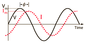 where φ is the phase angle between the current and the voltage and where V and I are understood to be the effective or rms values of the voltage and current. The term cos φ is called the "power factor" for the circuit.