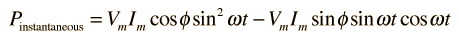 then the instantaneous power at any time t can be expressed as