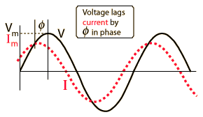 You know that the voltage in a capacitive lags the current because the current must flow to build up the charge, and the voltage across the capacitor is proportional to that charge which is built up on the capacitor plates. |