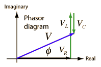 RLC Series CircuitThe RLC series circuit is a very important example of a resonant circuit. It has a minimum of impedance Z=R at the resonant frequency, and the phase angle is equal to zero at resonance. ![]()