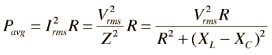 | Using the same circuit parameters, the illustration at left shows the power dissipated in the circuit as a function of frequency. Since this power depends upon the square of the current, these resonant curves appear steeper and narrower than the resonance peaks for current above.