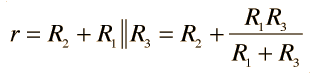 Thevenin/Norton ResistanceThe Thevenin resistance r used in Thevenin's Theorem is the resistance measured at terminals AB with all voltage sources replaced by short circuits and all current sources replaced by open circuits. It can also be calculated by dividing the open circuit voltage by the short circuit current at AB, but the previous method is usually preferable and gives![]() ![]()