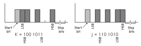 ASCII Alphanumeric CodeThe American Standard Code for Information Interchange (ASCII) is the standard alphanumeric code for keyboards and a host of other data interchange tasks. Letters, numbers, and single keystroke commands are represented by a seven-bit word. Typically a strobe bit or start bit is sent first, followed by the code with LSB first. Being a 7-bit code, it has 2^7 or 128 possible code groups. ![]()