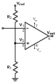 One use of a comparator is to compare the input to a standard voltage and switch the output if the input is above that threshold. If goes more positive than the voltage set by the voltage divider for ,