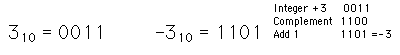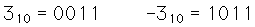 This code has the advantage that arithmetic operations are straightforward. Subtraction is accomplished by binary addition of the 2's complement. Multiplication also can be carried out. ![]()