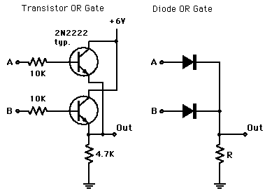 Making an OR GateThese are ways to make an OR gate from transistor switches or diodes. ![]()