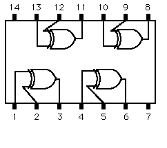 IC 7486 Exclusive-ORThis is an example of convenient packaging of XOR gates in integrated circuit form. ![]()